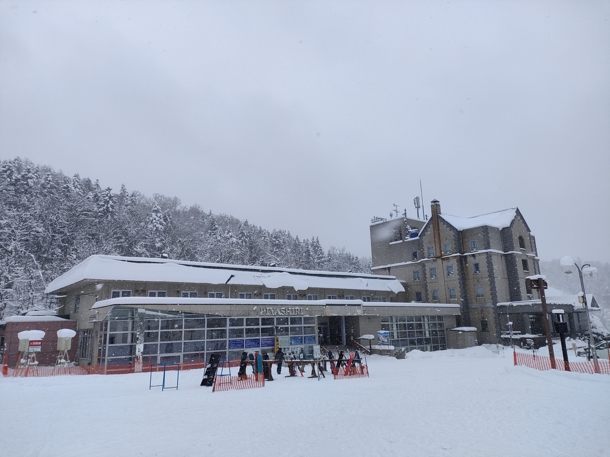 上の写真は第一ペアリフト横のゲレンデからスキーセンターを望んだ状態です。