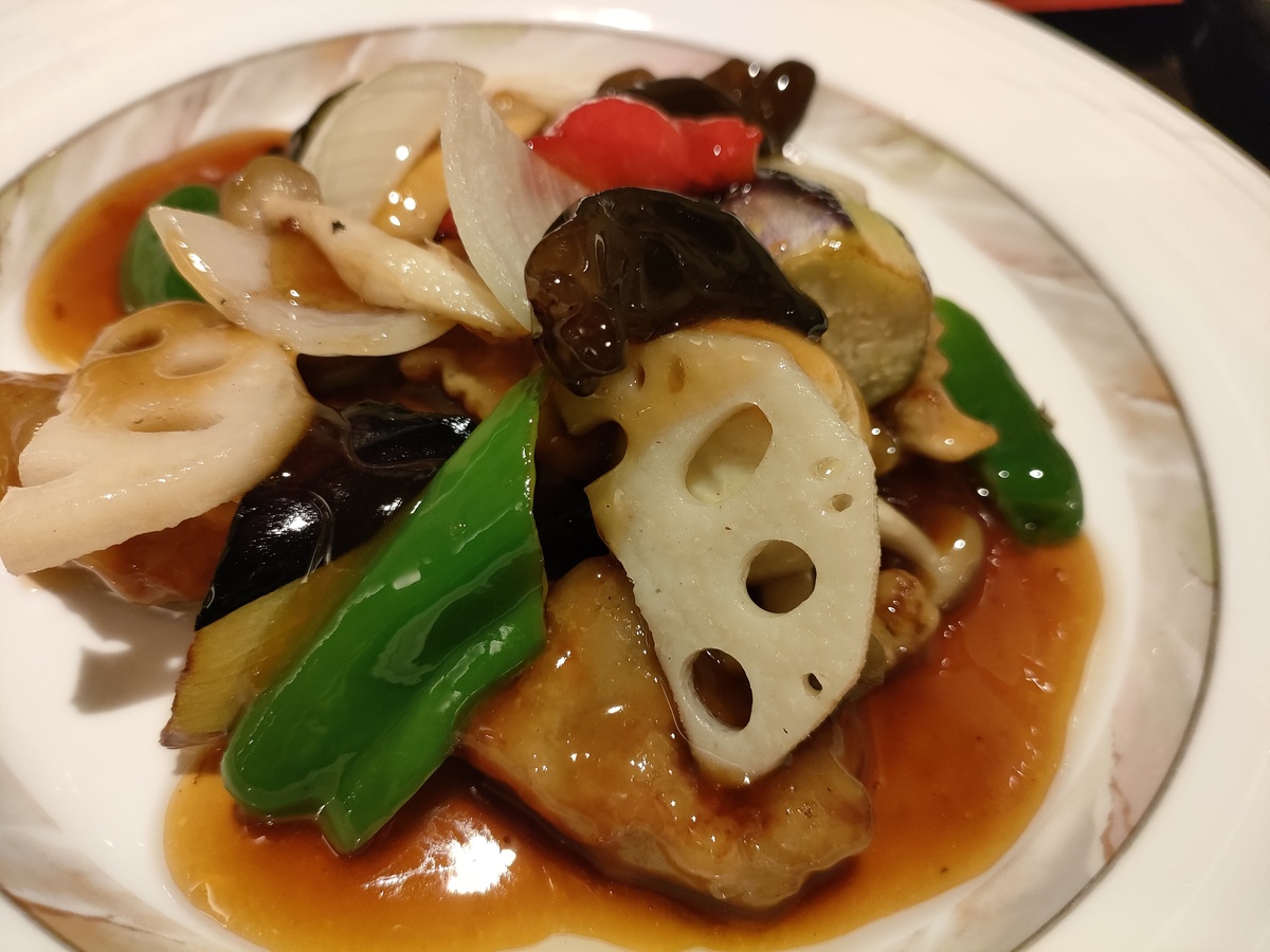 カリッと揚げられた豚肉に、少し酸味の強い黒酢あんの深みのある味わい、これがスゴく合うんですよね。