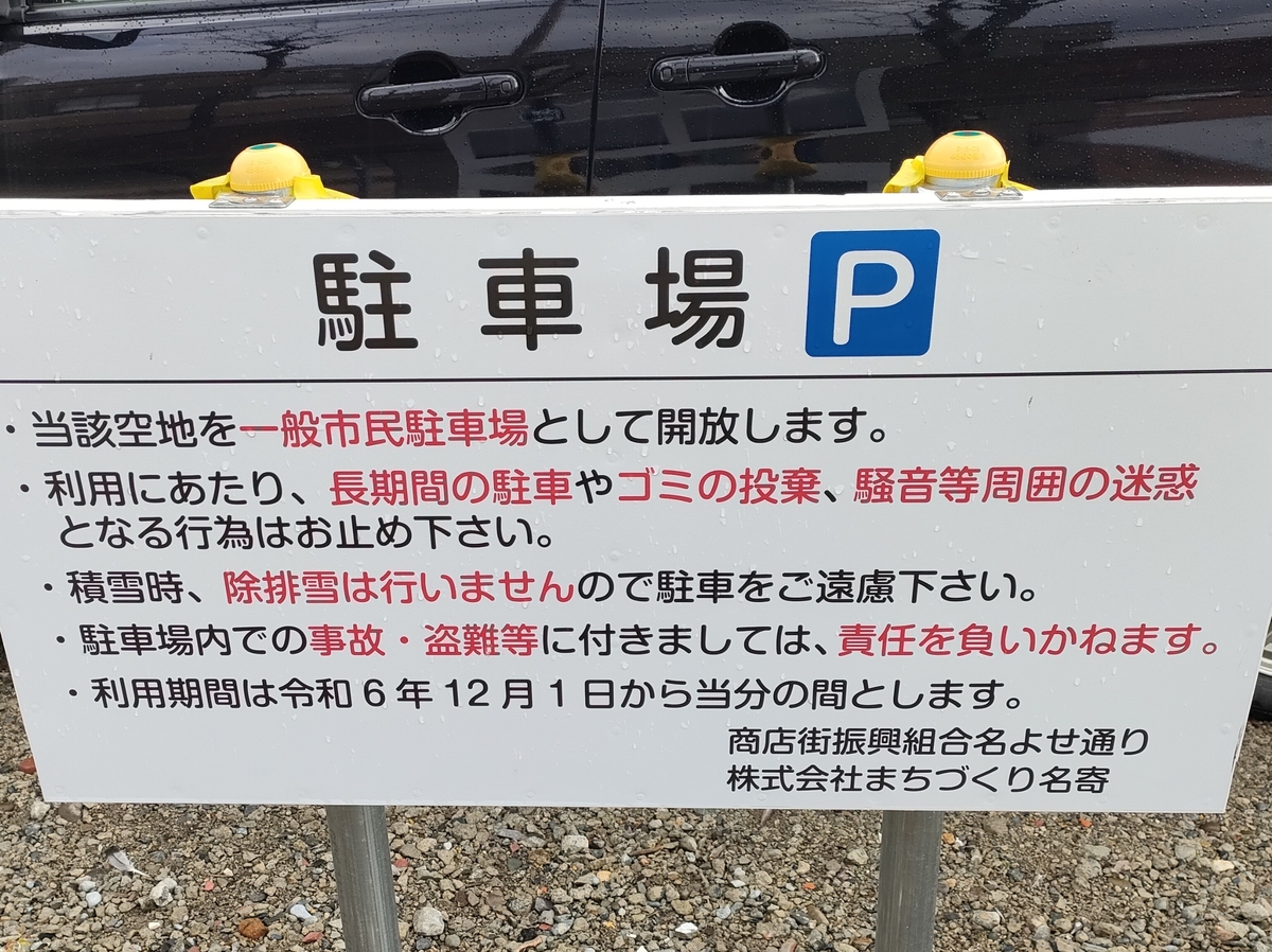 すぐそばにある一般開放された駐車場が便利ですよ。