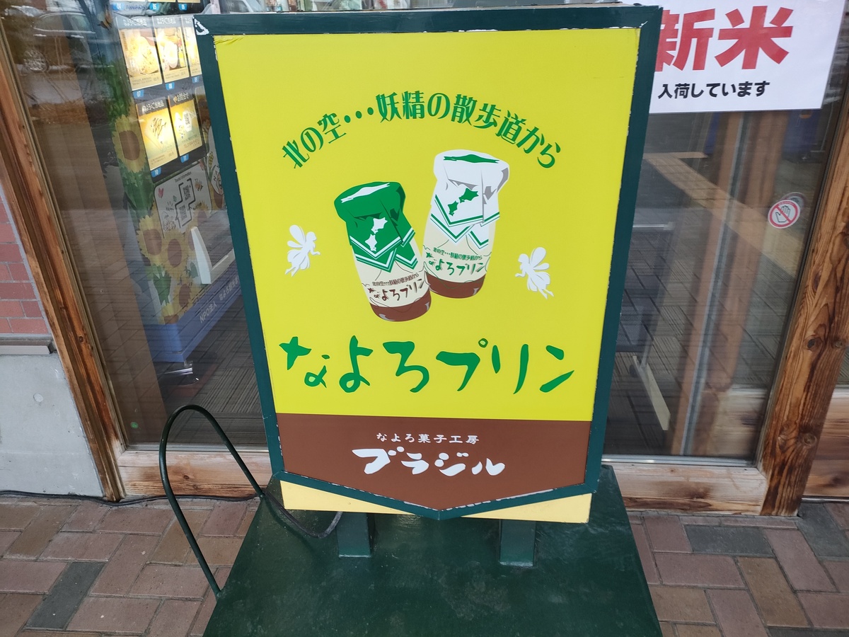 そんな道の駅の入り口横に、なよろプリンの看板を見つけました。