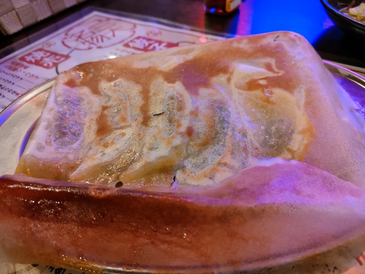 パリッと焼き上がった餃子は、生地はやや厚めでもっちり、餡はニラたっぷりでこれも結構刺激的な味わいです!