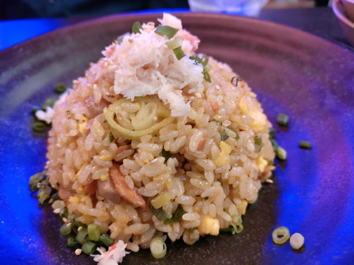 シメはチャーハンを。カニのほぐし身が贅沢に乗っかって最高でした!