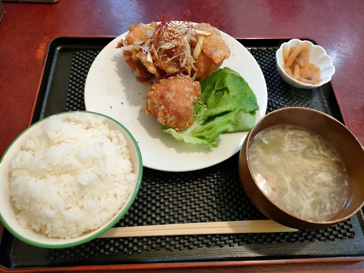 揚げ鶏がとにかくデカイ!ご飯も盛りが良くてありがたいですね。
