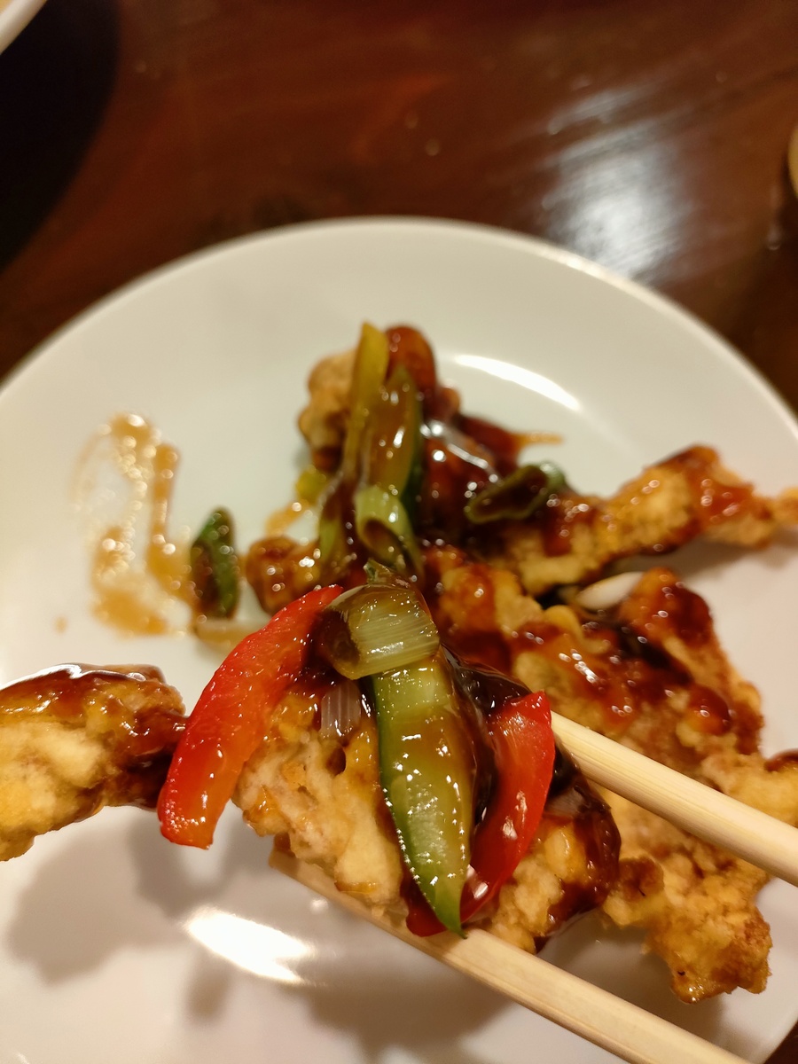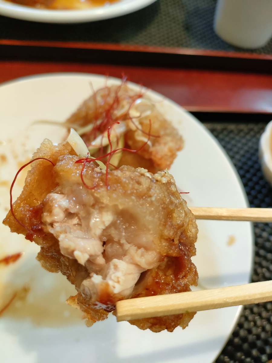 油淋鶏はサックリ揚げたての衣と、溢れる肉汁・・・!