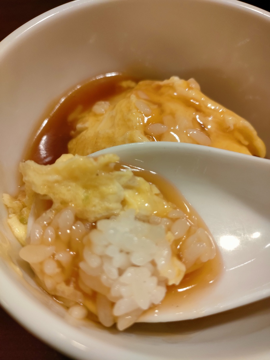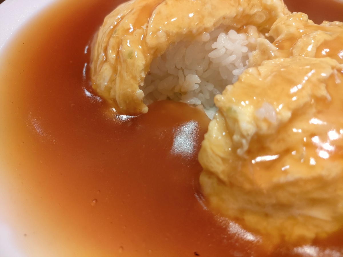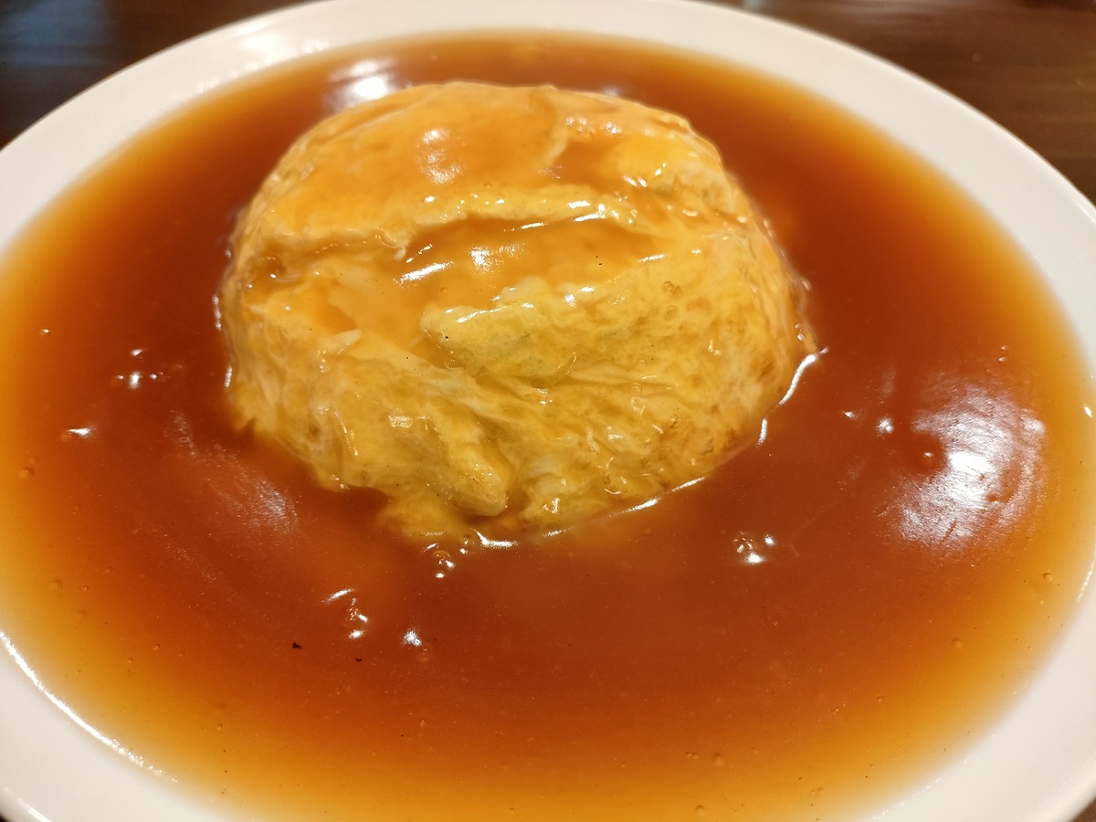 天津飯は玉子で巻かれた白飯に餡がかかったシンプルなつくりですが、つやつやホカホカのご飯に深い旨味の餡がしっかり絡み、ふわっと焼き上がった玉子の食感や甘味と絡み合って、なんとも上品な美味しさ!