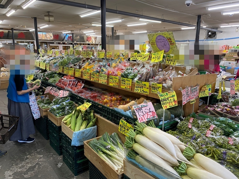 店内には、野菜や果物、精肉、鮮魚、加工品、パン、お菓子など、スーパーに負けないぐらいに豊富な商品が、ところ狭しと並んでいます。
