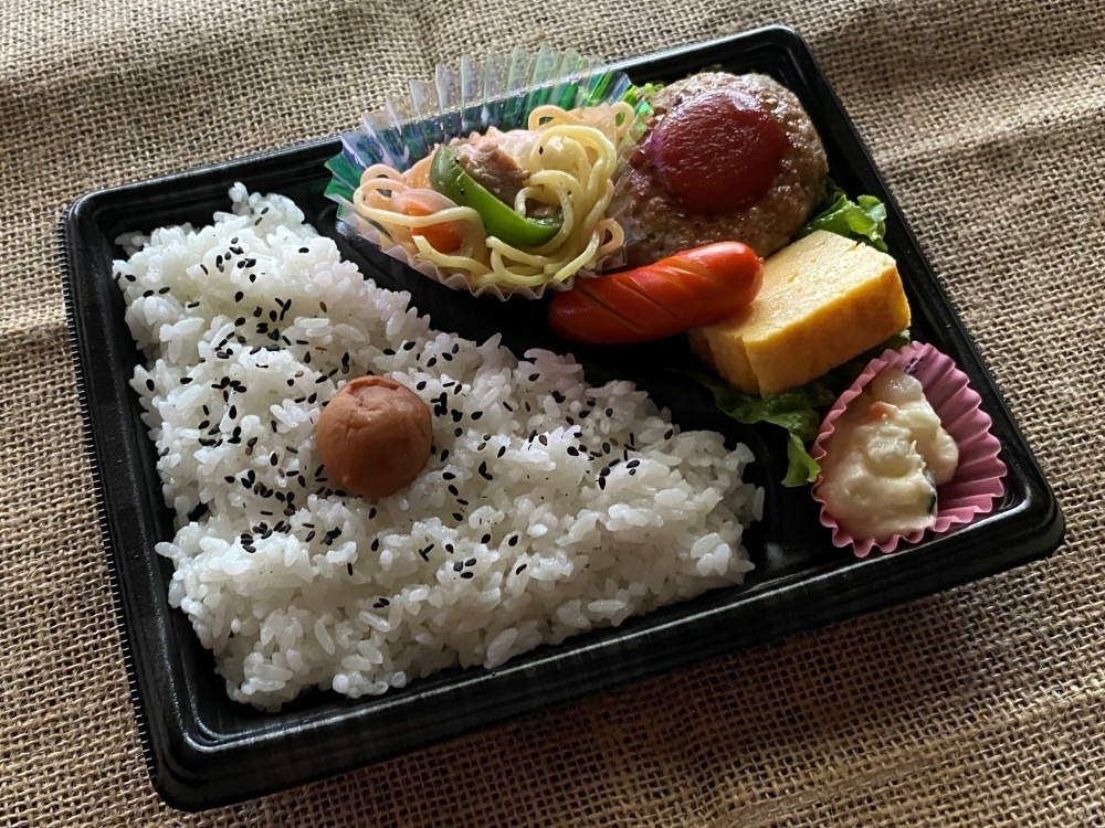 お弁当にはハンバーグとスパゲッティ、玉子焼き、赤ウインナーなどが詰められていましたが、どのおかずも手作りの味で、ほっとするような美味しさです。