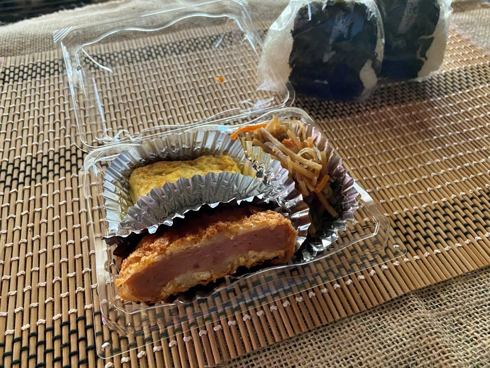 この日購入したのは、「のざわな(230円)」と「きんぴら(310円)」のおにぎり、そしてハムカツ、卵焼き、きんぴらごぼうが入った「お惣菜(350円)」です。