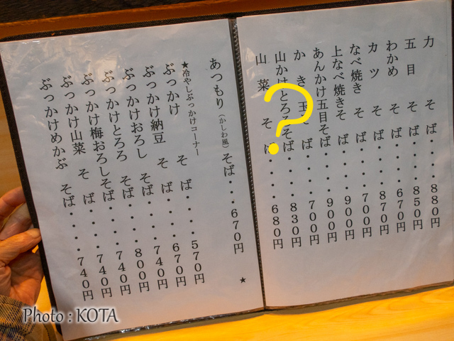 前のページから続く「あたたかいそば」欄のいちばん最後に。