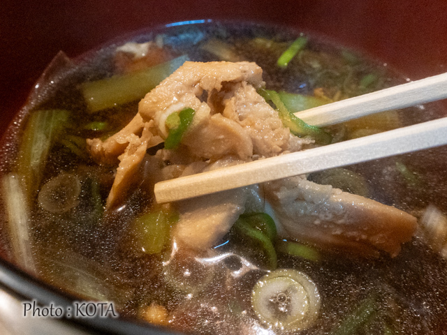 溶き卵でなく、かしわの風味をつゆに加えた点では、やぶそばさんのセンスが光る。