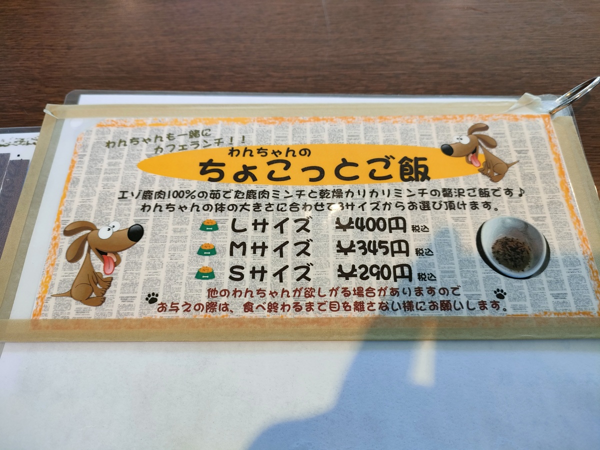 こちらは人間用メニューですが、肉球マークのついたものはわんちゃんも食べられるそうです。
