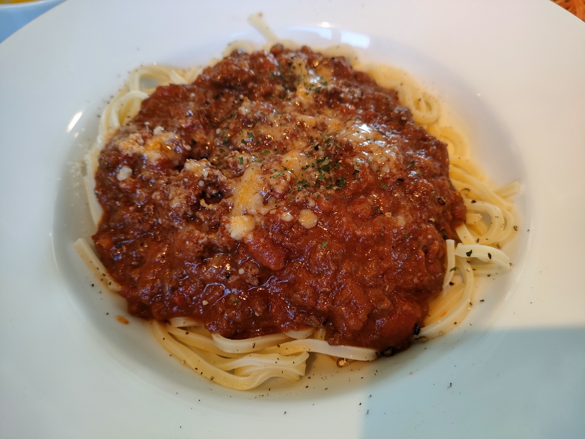 人間はラグーパスタを注文しました。