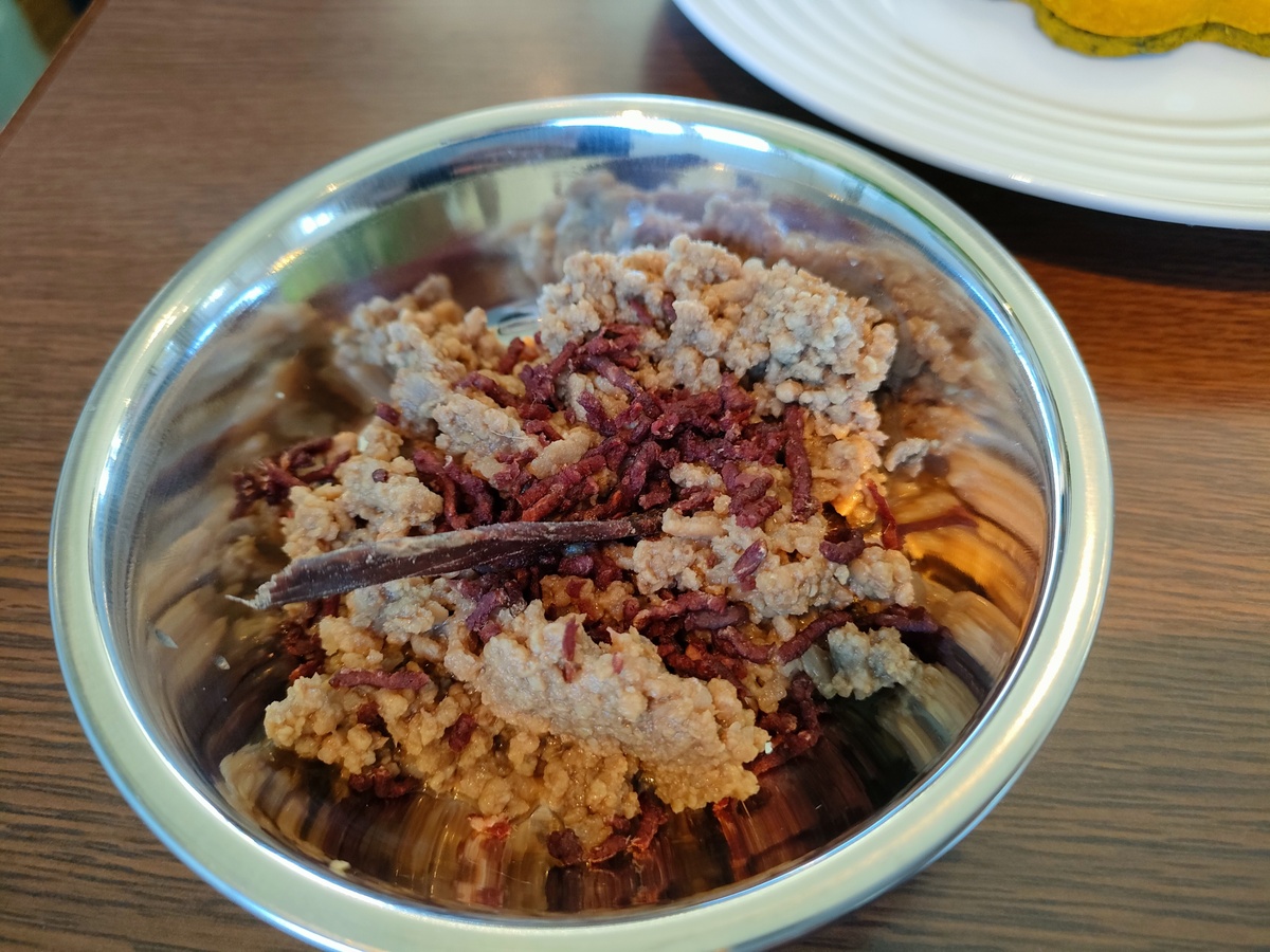 茹でた鹿肉ミンチと乾燥ミンチが合わさり、食感も楽しめそうです。