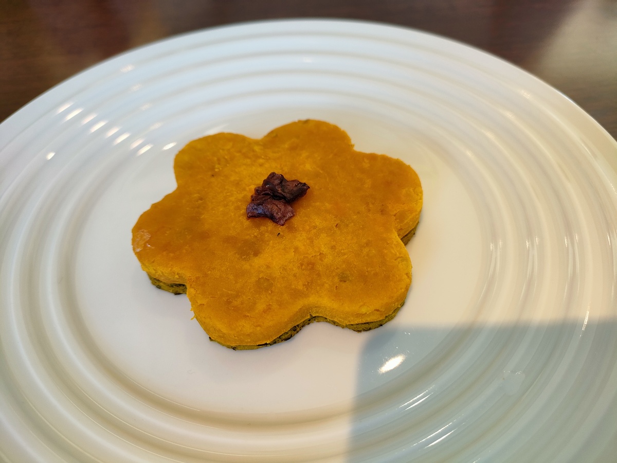 こちらはかぼちゃ100%のタルト風。真ん中に鹿肉がトッピングされています。