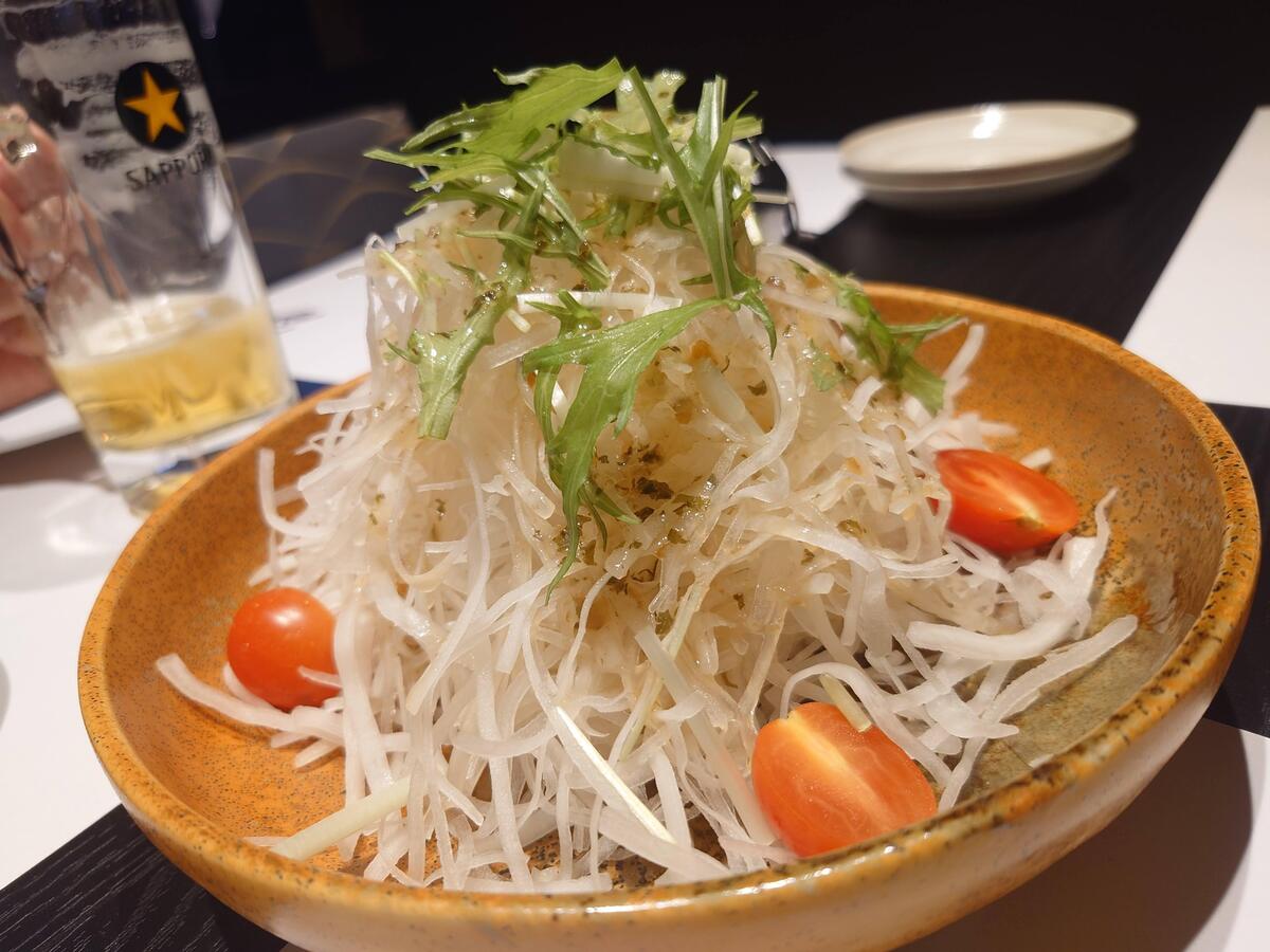 ノンアルにもお通しが来ました。このお通しがね、めっちゃ辛かった(笑)。