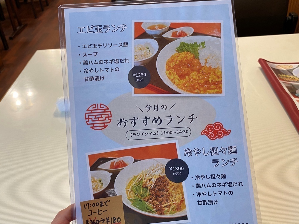 お店に伺ったのは、少し前になりますが今年の7月です。その月の「今月のおすすめランチ」は、「エビ玉ランチ」でした。