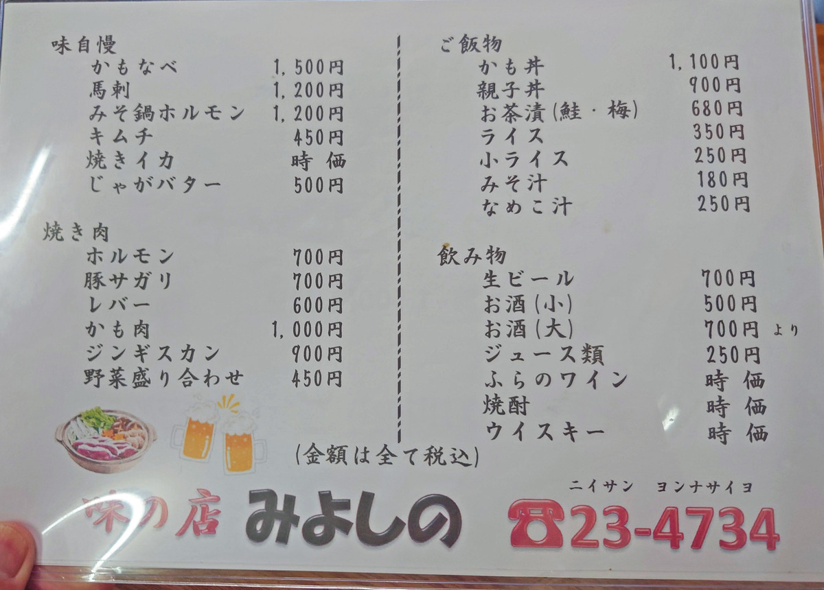 外の看板は「みよしの」でしたが店内の表記は「みよし乃」なにか理由があるのかな?今度行ったら聞いてみよう。