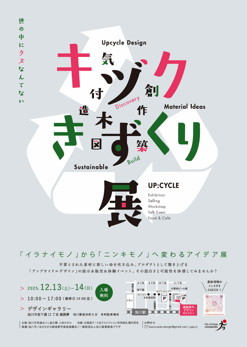 2025年12月13日(土)・14(日)に旭川市のデザインギャラリーで『キヅクきずくり展 ~世の中にクズなんてない~』が開催されます。