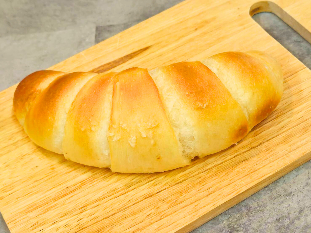 ご紹介するのは『自家製ガーリックバターを包んだフランス産天然塩の塩パン(税込200円)』。
