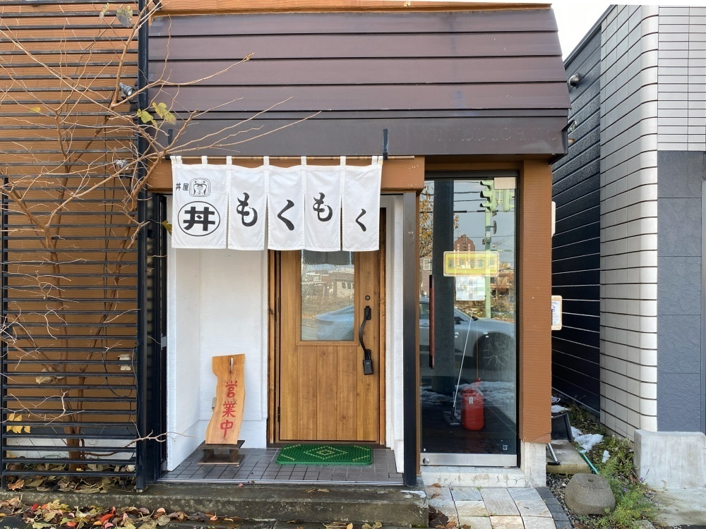 1条通20丁目にある「丼屋 もくもく」は、牛丼や豚丼、鳥せせり丼、トンテキ丼、スタカタ丼、高菜明太マヨ牛丼などいろいろな丼ものが味わえるお店です。