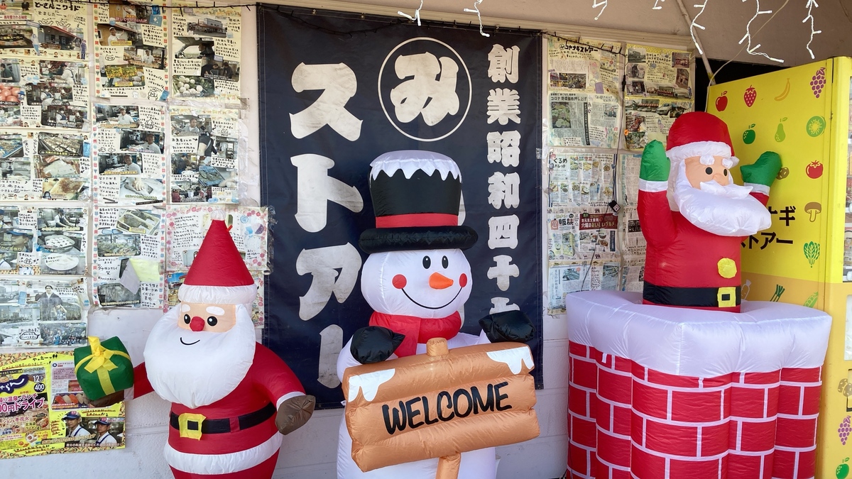 お店の前のディスプレイはサンタさんがお出迎え♪