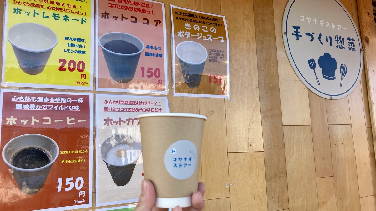 お店の入口左手にはテイクアウトコーナー(営業時間10:00~14:00)があり、温かいドリンクが買えるんです。