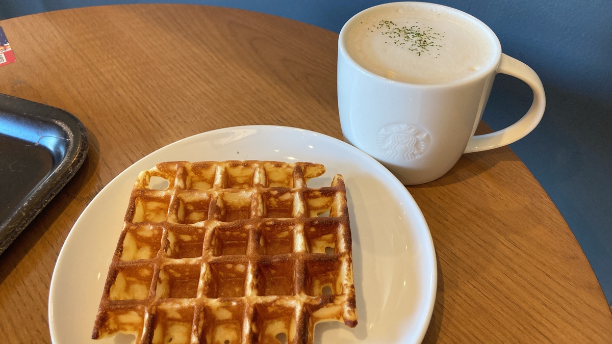 アメリカンワッフル(税込290円)と一緒に。温めてもらうとカリッと香ばしく、甘さ控えめでスープとの相性も抜群。