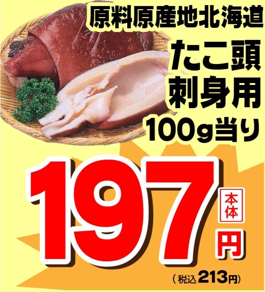 弾力と旨味が凝縮された北海道のたこ頭が税込213円!