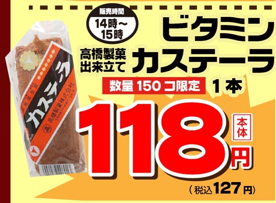 出来立てのビタミンカステーラが1本税込価格127円!