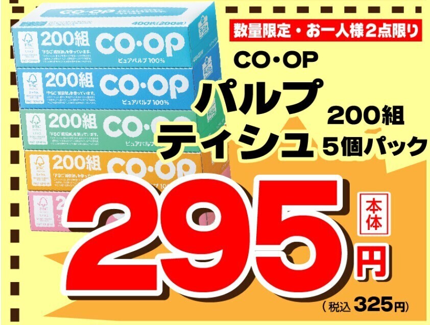 CO-OPパルプティシュ「200組」の5個パックです。