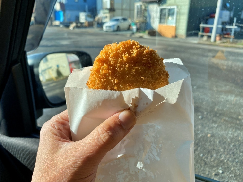 揚げたてを食べたかったので、1個だけ別の紙袋に入れてもらいました。さすがに揚げたてアツアツはおいしいです。
