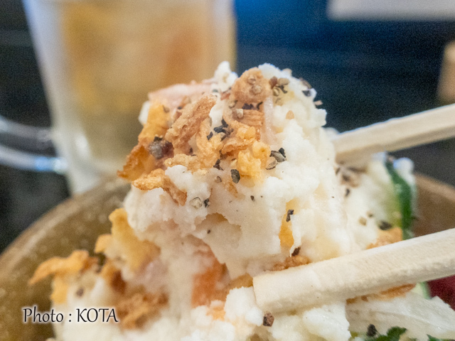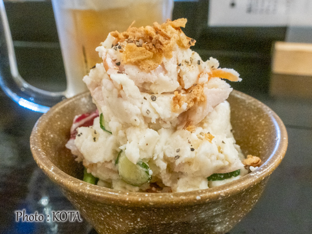 この夏オープンした居酒屋の、売りはもちろん鶏と牛タン。と誰もが思うが、ポテトサラダが案外おもしろい。