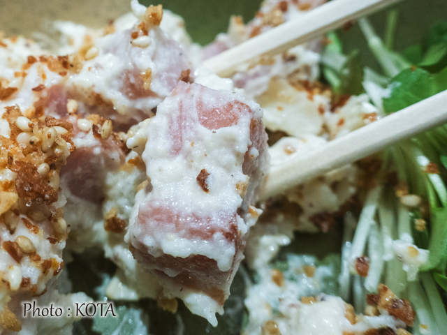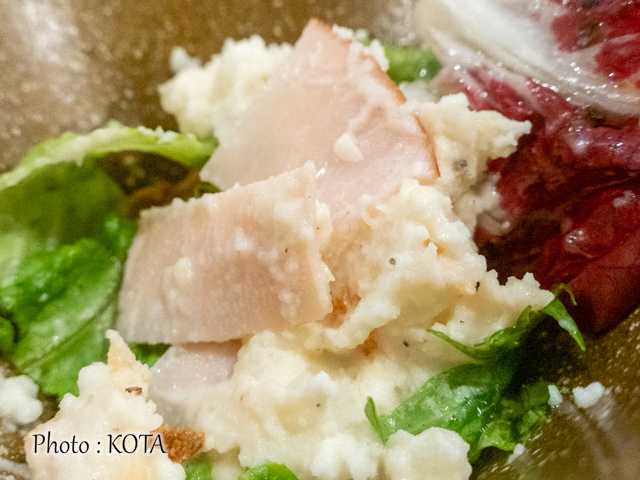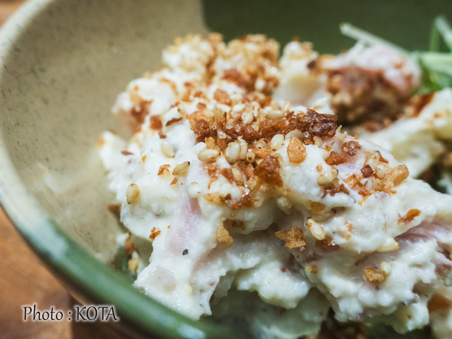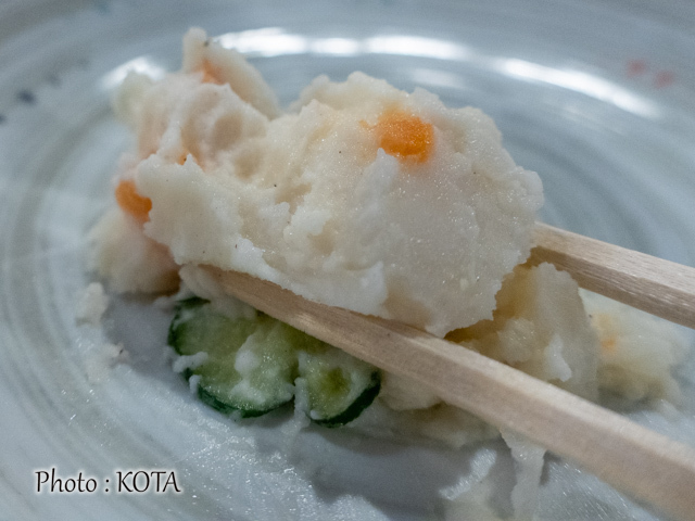 また、甘酸っぱいドレッシングが、口解けにカジュアルなさわやかさを加味。ポテトサラダというサラダでありながら、よりサラダ感が楽しめる一品とお見受けする。