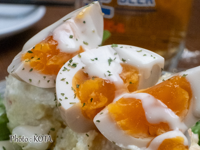 この煮卵をおイモと混ぜながら頂くわけだが、互いの素材感が際立つ、ちょっとした卵料理という感じがなかなかに斬新。