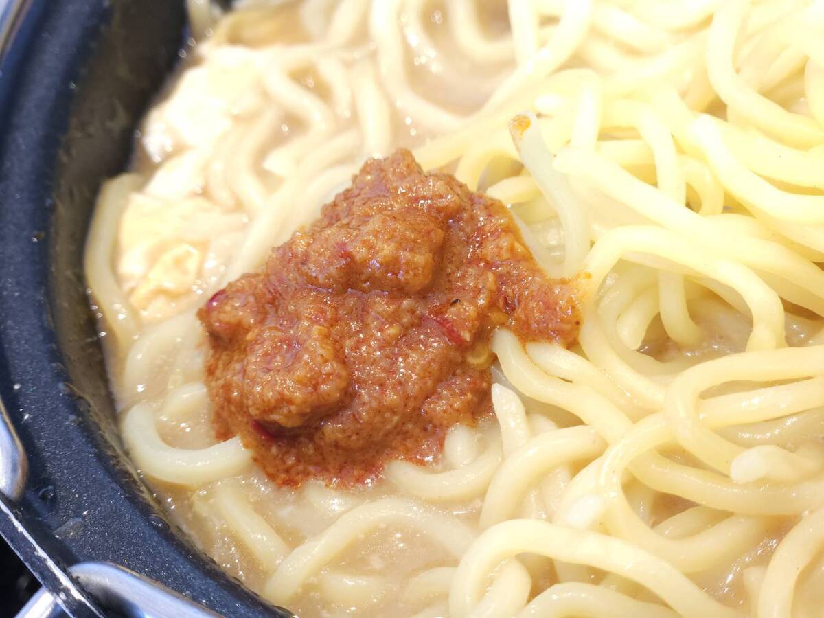 麺を加えると煮込みラーメンになり、麺の量もかなりあるのでなかなかのボリューム。