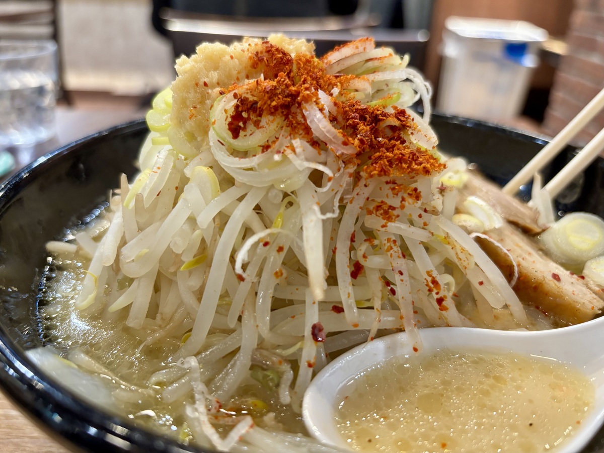 唐辛子や生姜がのったネギやもやしは、濃厚な味噌スープに浸しながらいただくことで、ほどよい塩味とシャキシャキ感を同時に楽しむことができます。