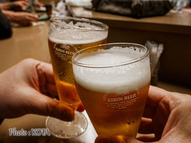 同じく呑み歩きを趣味とする友人と、ともに初訪問を祝って(?)ビールで乾杯。