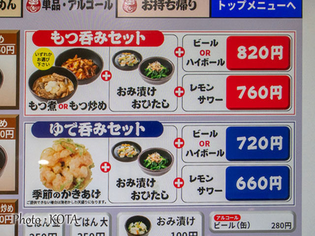 「もつ呑みセット」って何!? 表のサインには載ってなかったよね。