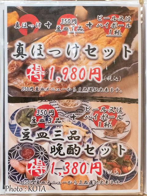 同店メニューにはリーズナブルな晩酌セットが用意されている。