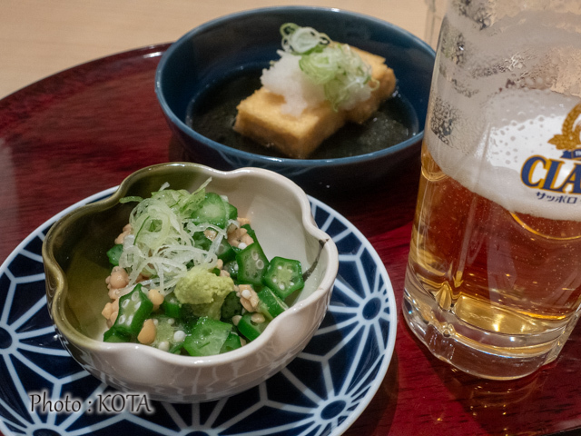 まずは、「オクラ納豆」と「揚げ出し豆腐」が到着。