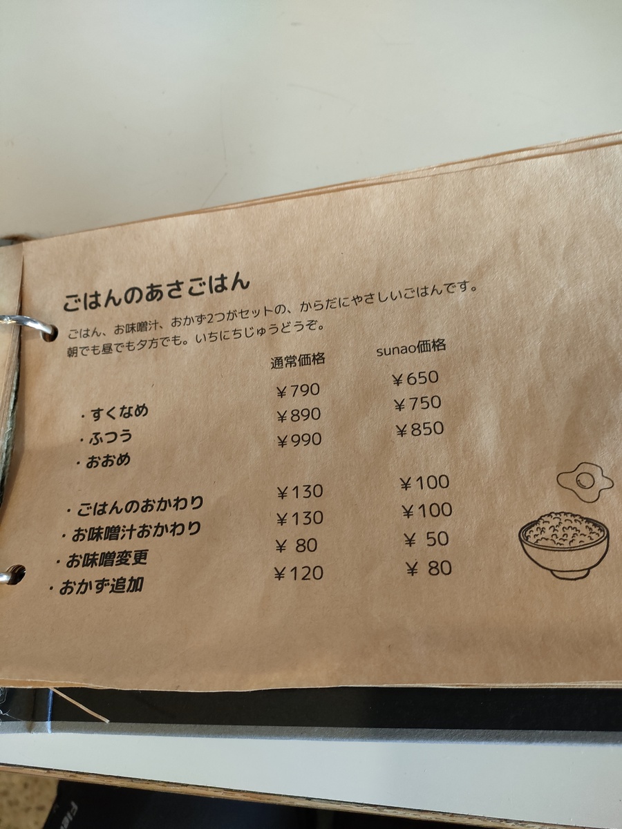 「ごはんのあさごはん」を注文しました。ごはんはふつう盛りです。