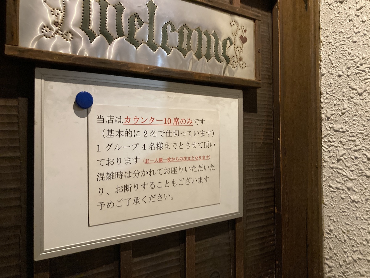 店内はカウンター席のみ10席で、1グループ4名までの入店となっています。