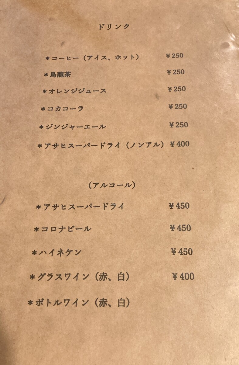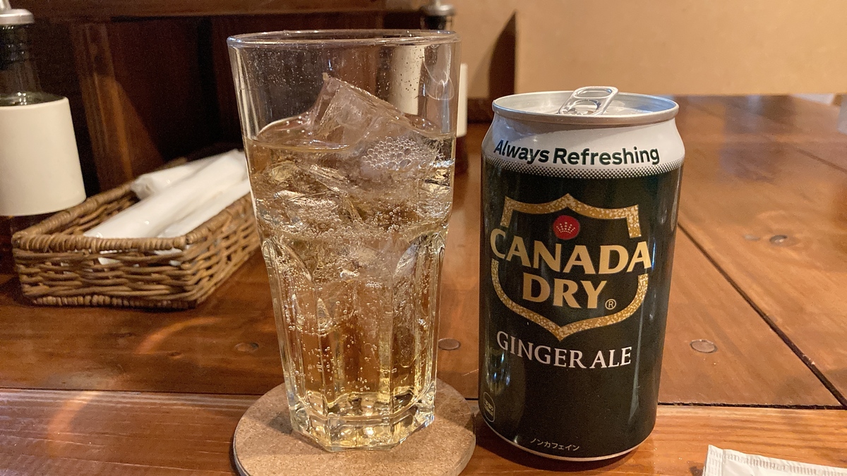 ドリンクは、ジンジャーエールやコーラを注文すると缶で提供されます。