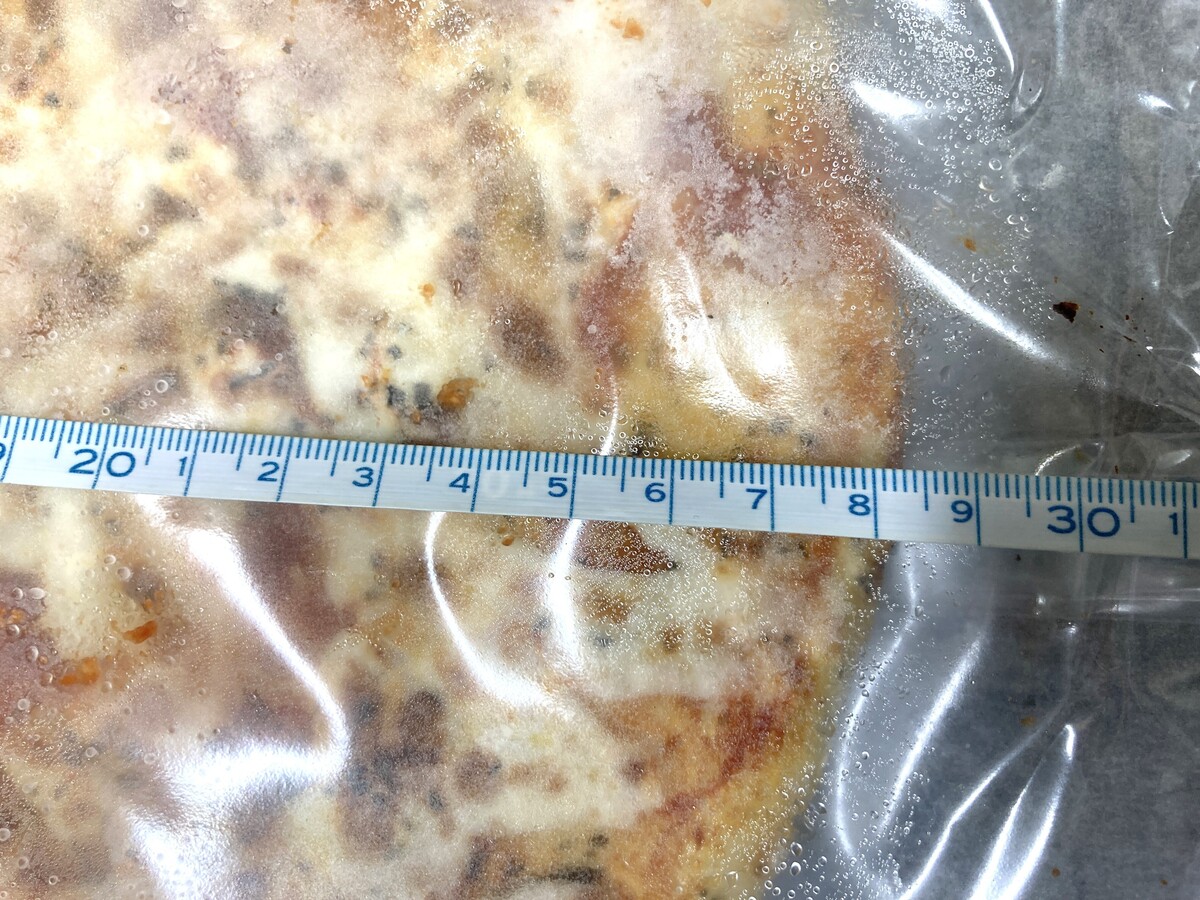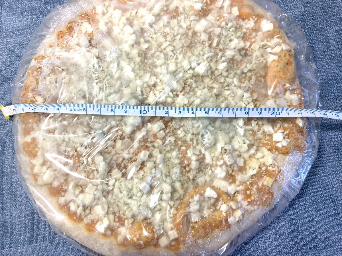 直径は約28cmほどで、宅配ピザのLサイズより少し小さめくらい。(冷凍庫の空きがあるかチェックしてから買うのがおススメ)