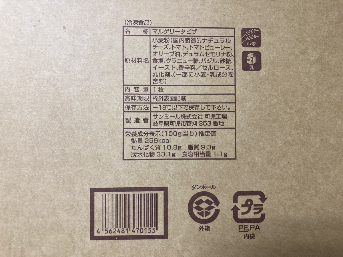 岐阜県のサンミールという小麦製品を扱う工場で作られているピザです。