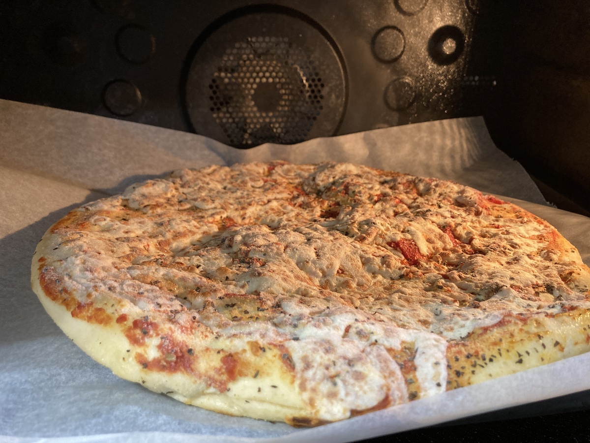 オーブンレンジのピザモードで焼いてみましたが、もともと焼き目が付いているため、加熱しすぎには注意が必要です。(我が家は焼き過ぎました。)