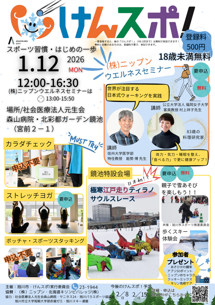 2026年1月12日(月祝)に旭川市の森山病院、北彩都ガーデン鏡池で『けんスポ!』が開催されます。