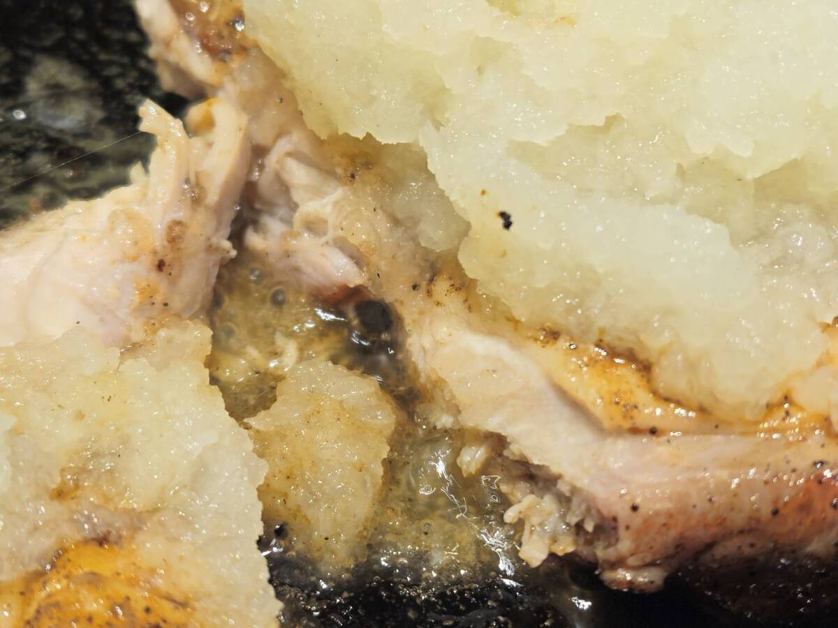 チキンは鉄板で熱々に焼かれて提供してくれます。