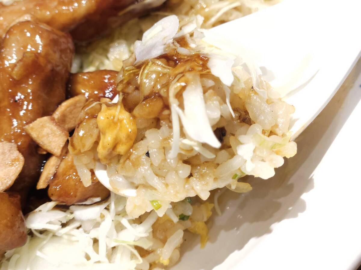 とんてきのタレはかなり濃厚でとろみがあり、チャーハンにも絡みます。