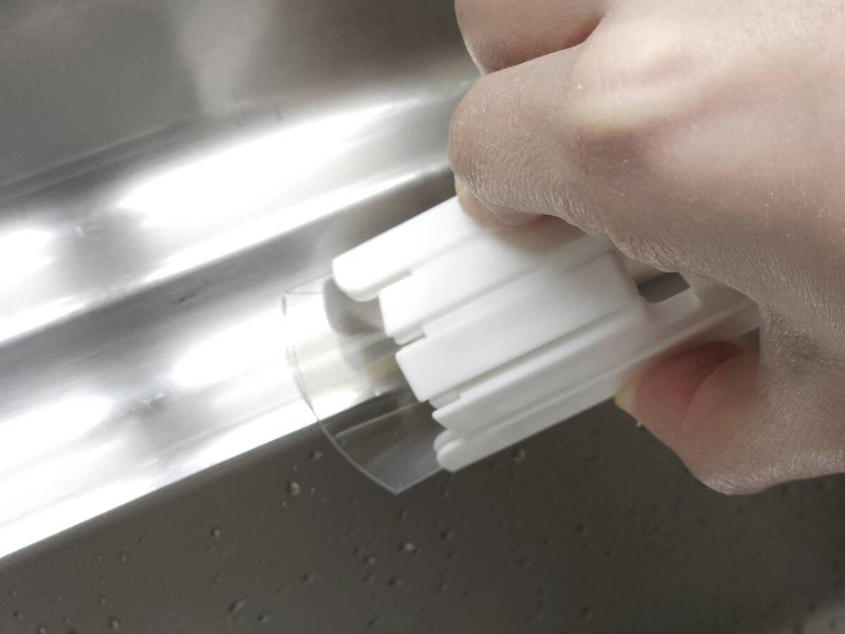 このスクレーパーは柔らかい素材でできているので、湾曲に沿って柔軟に曲げることができるのがポイント。